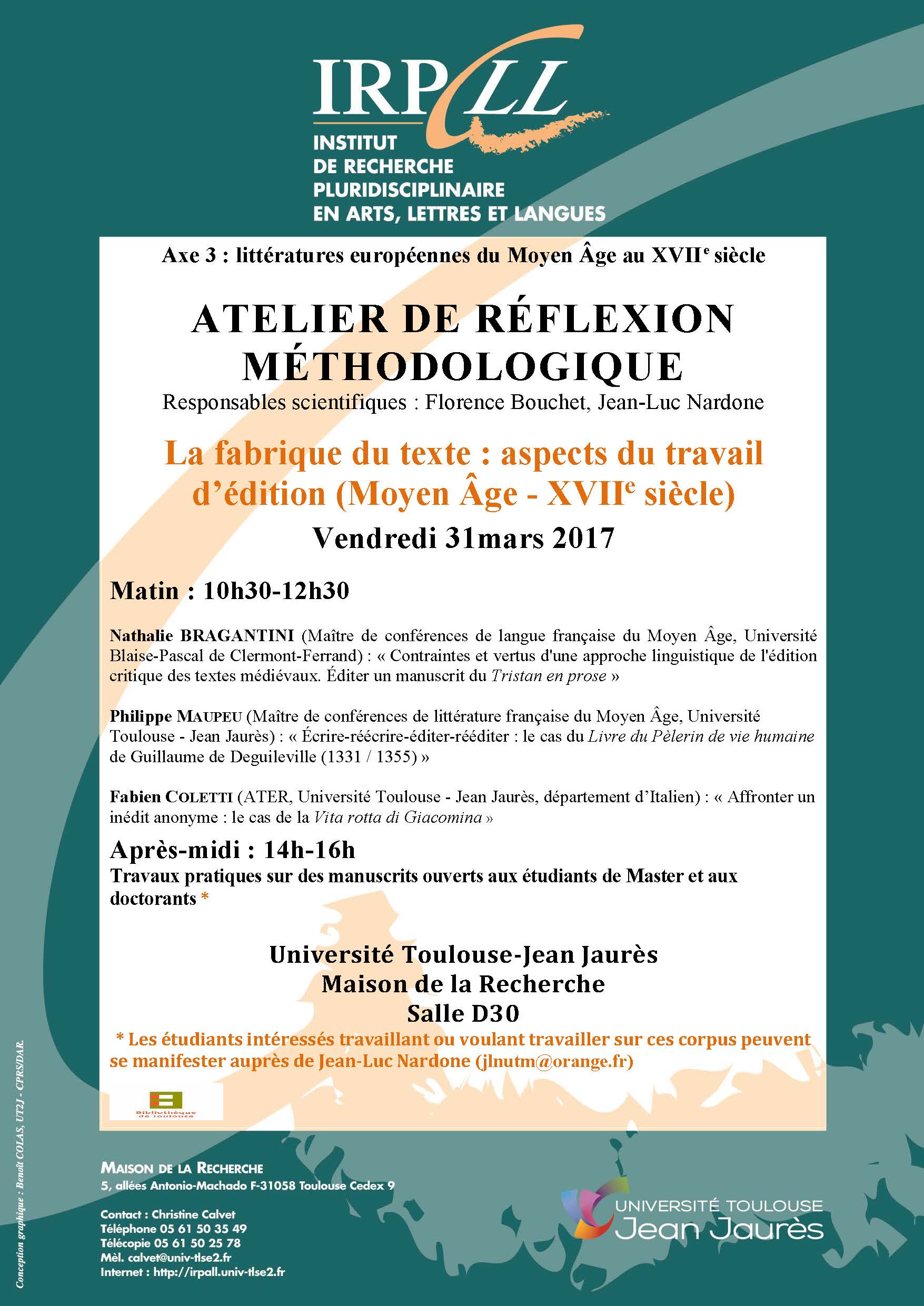 La fabrique du texte : aspects du travail d'édition (Moyen Âge - XVII° siècle) - 31/03/2017