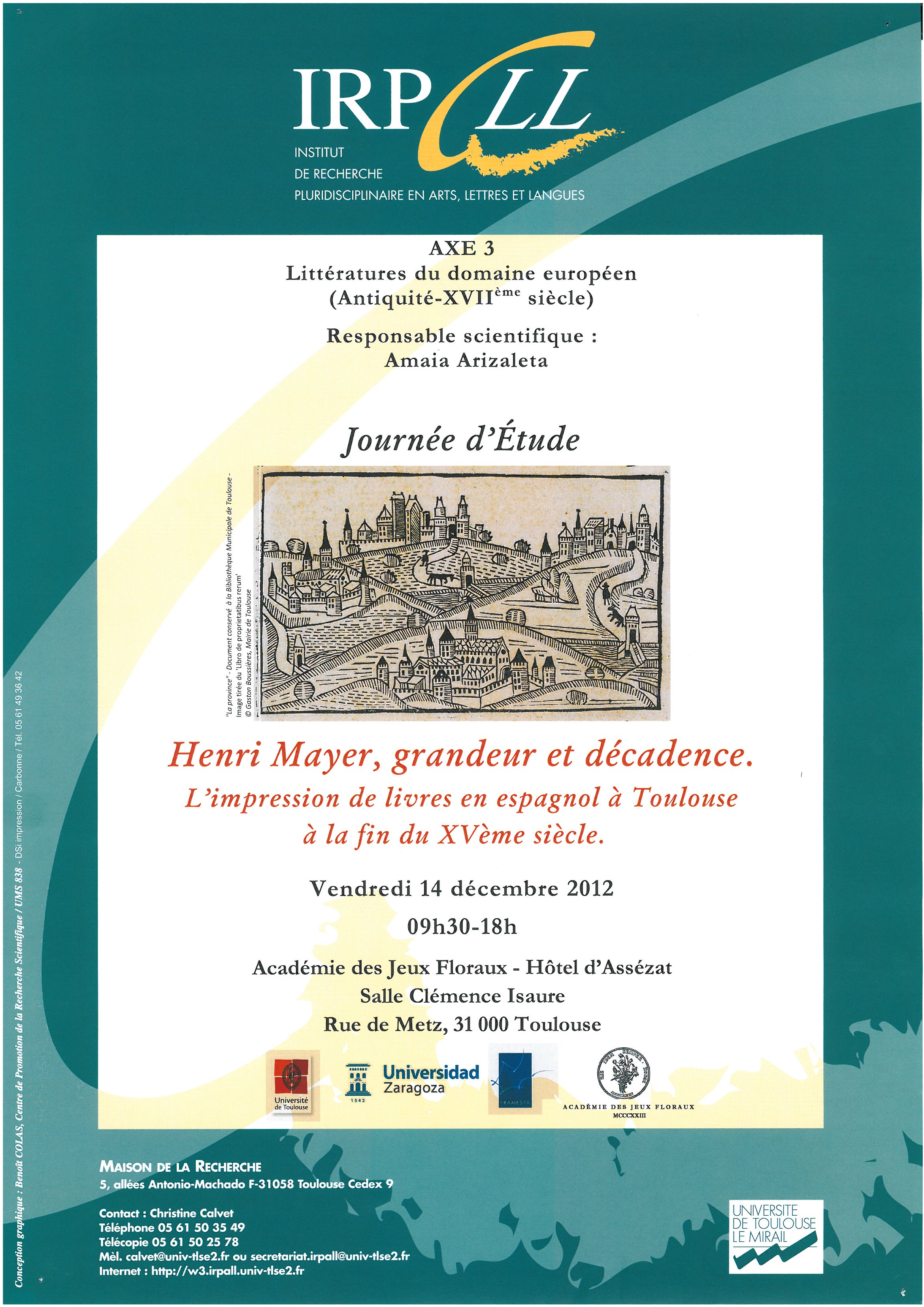 Journée d'étude "Henri Meyer, grandeur et décadence' L'impression de livres espagnols à Toulouse à la vin du XVIéme siècle"